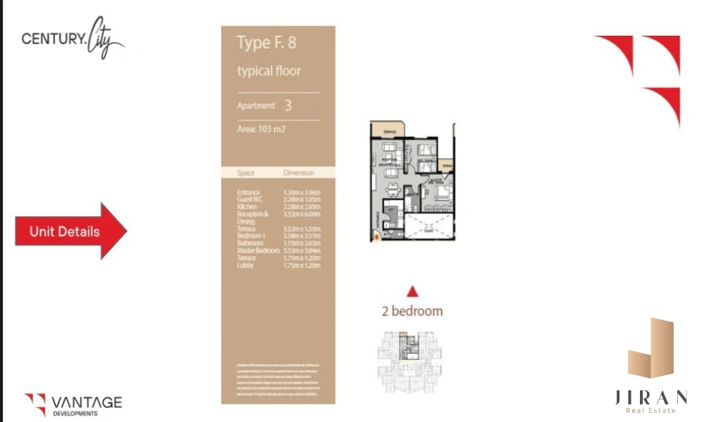شقة سكنية مساحة 103 متر مربع في سنشري سيتي التجمع الخامس.