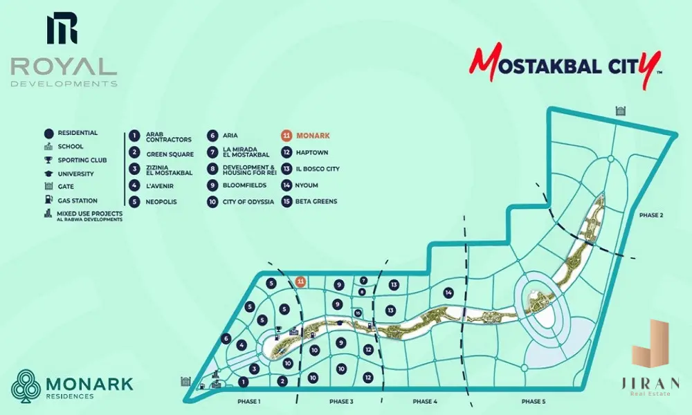 شقة 63 متر في كمبوند مونارك ريزيدنس المستقبل سيتي.