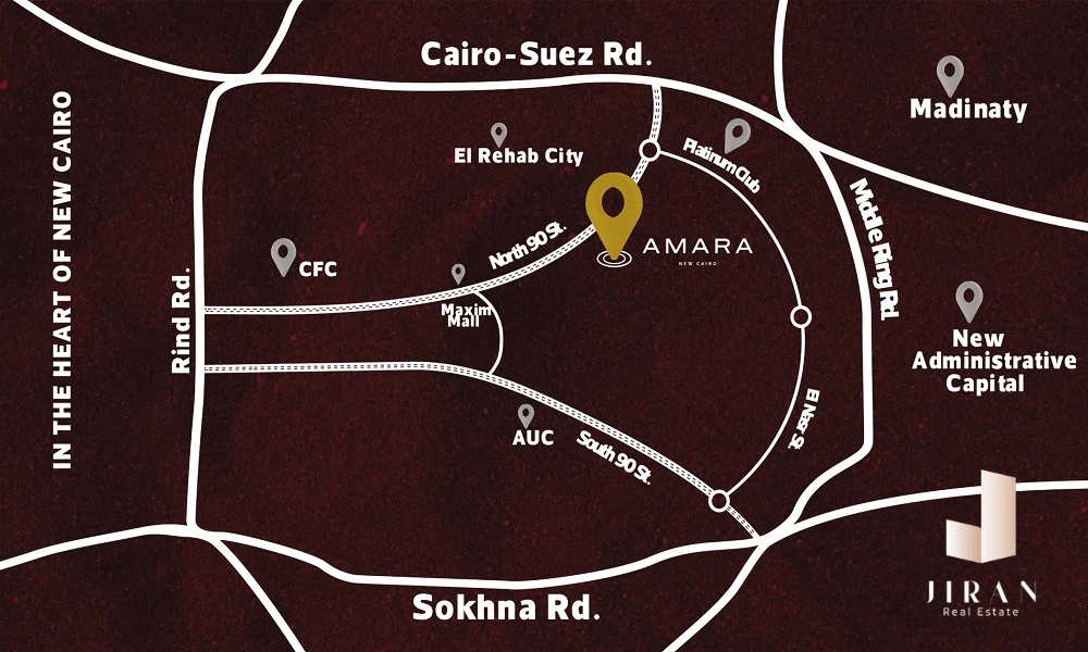 شقة 72م في امارا ريزيدنس التجمع الخامس.